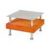 Obdélníkový stolek s vrchní deskou z netříštivého skla a čalouněným korpusem. Nožičky jsou chromované. Čalounění máte ...6223 Kč