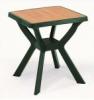 Zahradní plastový stůl RENO WOOD v zelené barvě s deskou v dekoru s imitací dřeva. Rozměry jsou 70 x 70 x 72 cm.822 Kč