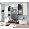 Obývací stěna s Led osvětlením, černý vysoký lesk HG / bílé malované sklo / bílý lesk, DAX