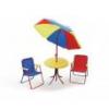 Dětská stolová sestava. Praktická a pohodlná na zahradu či terasu. Obsahuje: 1x stůl, 1x slunečník, 2x skládací křesílka.858 Kč