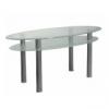 Moderní skleněný jídelní stůl oválného tvaru s praktickou poličkou : Pokud vám bude něco na stole překážet , prostě to odložíte . ...0 Kč