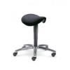 Otočná stolička MEDI se sedlovým sedákem a černými plastovými díly, potah z látky NANOVA