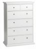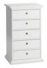 Elegantní komoda s 5 zásuvkami z foliované dřevotřísky o síle 18 mm. Provedení coffee nebo bílá. Kovové pojezdy.0 Kč