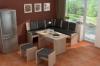 Rohová kuchyňská linka,lavice,příborník,židle,digestoř