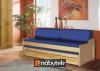 Rozkládací postel pro dvě osoby z masivní borovice, dva lamelové rošty, úložný prostor. Matrace jsou z PUR pěny v látce žinilky modrá, ...