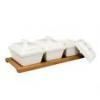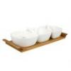 5dílná sada obsahuje 4x keramickou misku s bílou glazurou, 1x dřevěný podnos 26cm (bambus).329 Kč