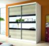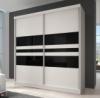 Dvoudveřová skříň, 183x218, s posuvnými dveřmi, bílá/černé sklo/bílá, MULTI 11