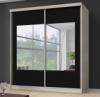 Dvoudveřová skříň, 203x218, s posuvnými dveřmi, bílá/bílá/černé sklo, MULTI 11