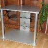 Prodám TV stolek stříbrný s tvrzeným sklem. Rozměry - výška: 71 cm, hl.: 45 cm a délka 77 cm u zadní strany, vpředu: 60cm.0 Kč
