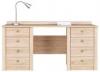 Psací stůl je široký, po obou stranách má čtyři šuplíky na kovových pojezdech. Úchyty jsou kovové.4550 Kč